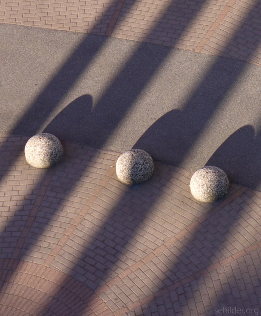 Mycket vackert med dubbla skuggor, de runda formerna och mönstrad stenläggning. Behagligt och konstnärligt.