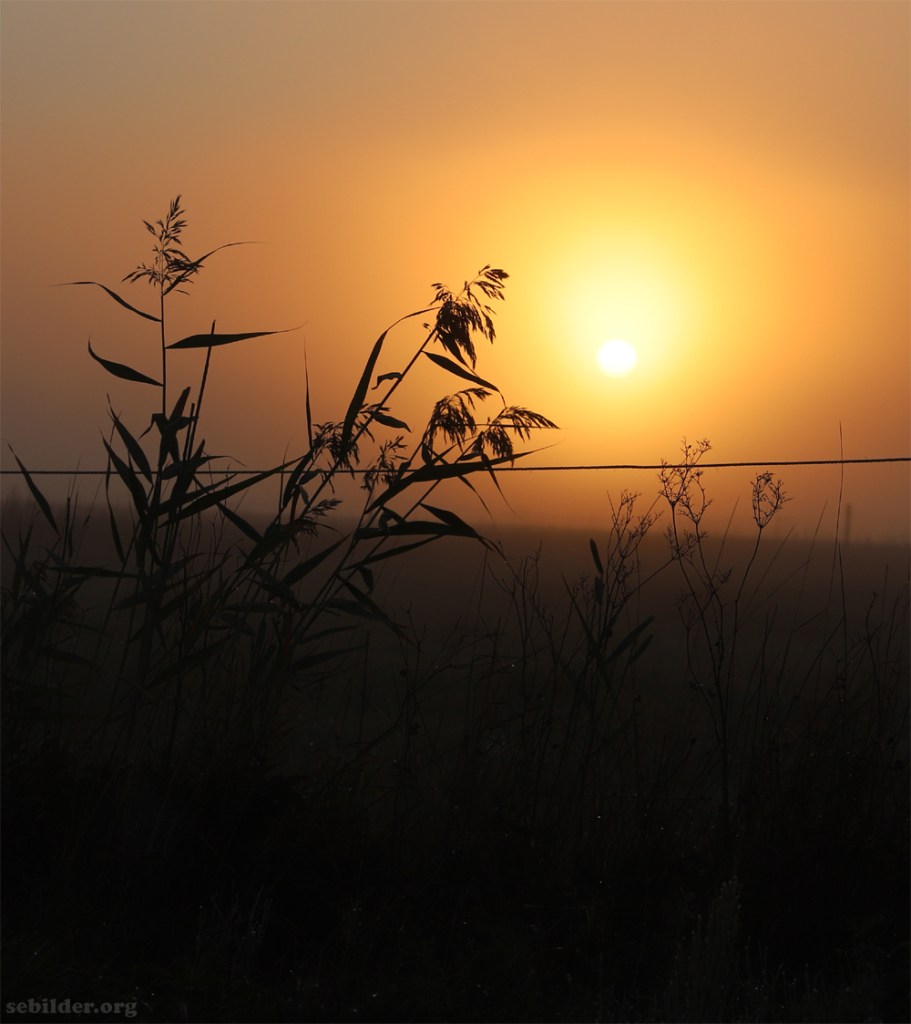 Klassiskt vackert med skira växter, dimma och en sol som jobbar på att tränga igenom. Varför har vi aldrig dimma?