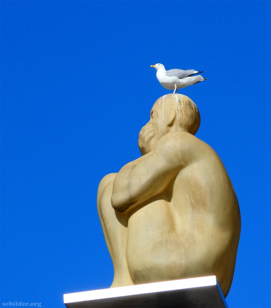 De skiter på skulpturen