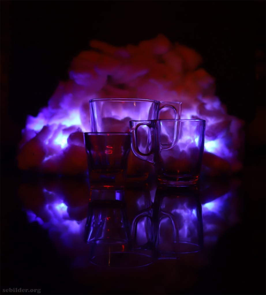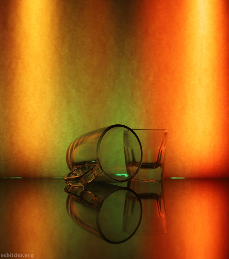 Liggande mugg och stående glas
