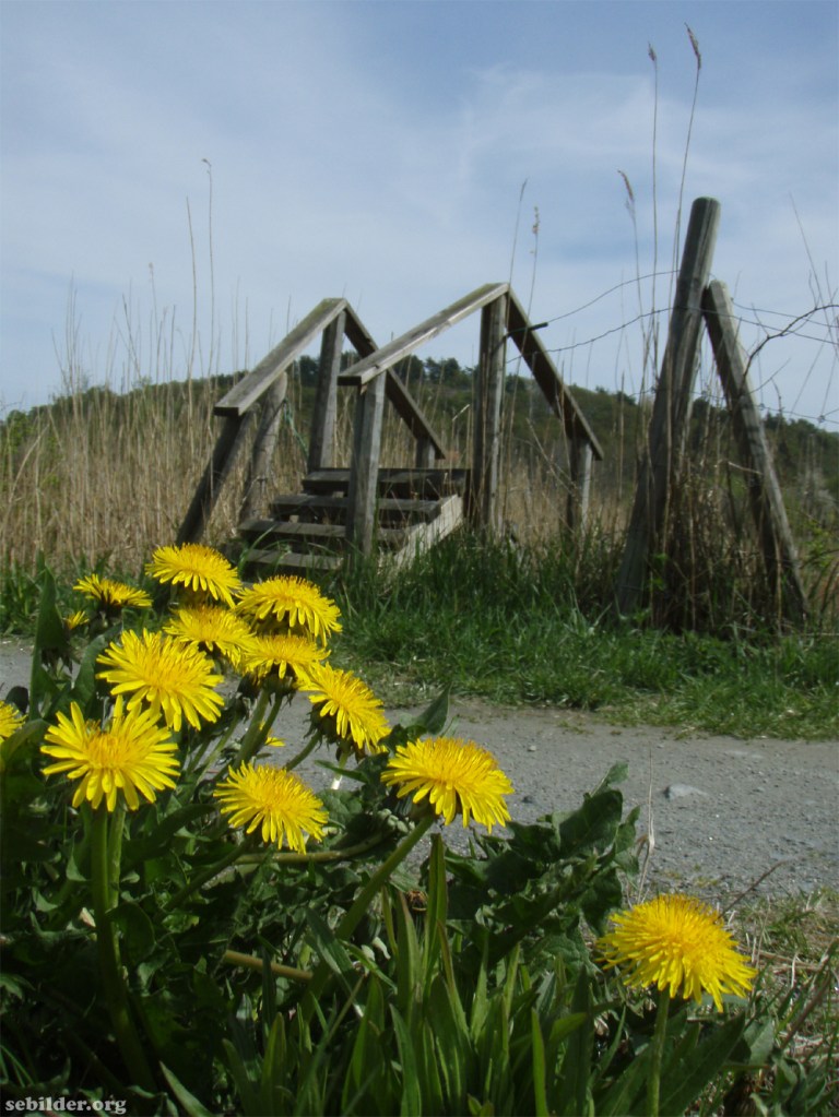 Fint med stättan bakom de kraftfulla maskrosorna. Lantlig känsla.