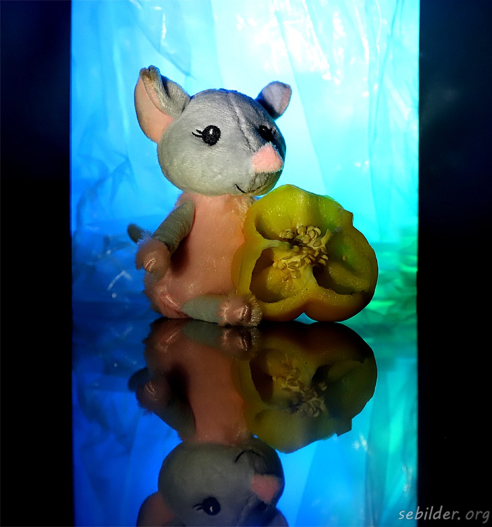 Sitter med en paprika