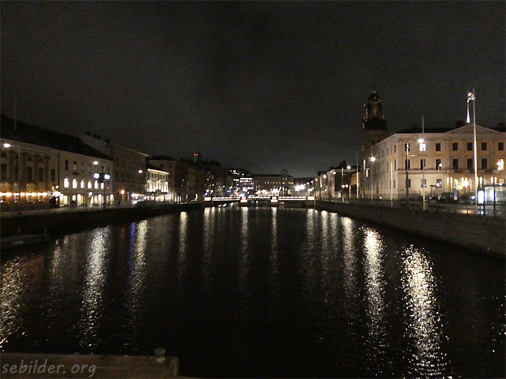 Stadens kvällsljus i kanalen. Vackert fotad speglingsvy.