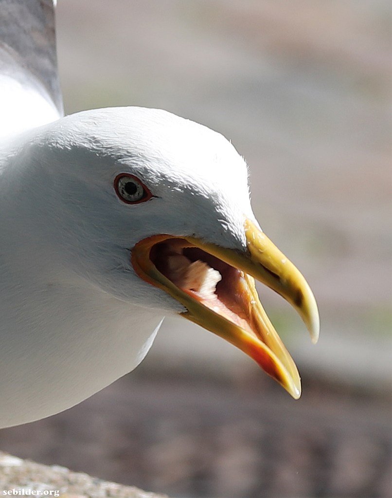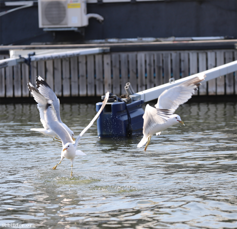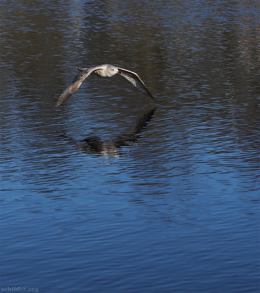 Ung mås flyger lågt